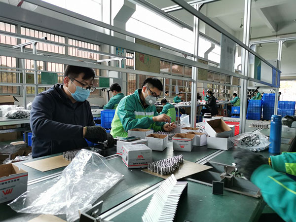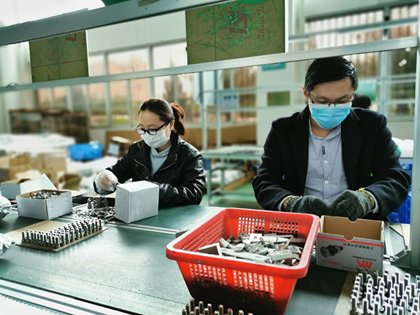 企業(yè)復(fù)工后,重點崗位人員基本到崗,工人們戴著口罩,動作麻利地加工,包裝,出庫。整個產(chǎn)線分工明確,井然有序,有速度有質(zhì)量,從而保證客戶訂單都可以及時出庫。